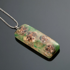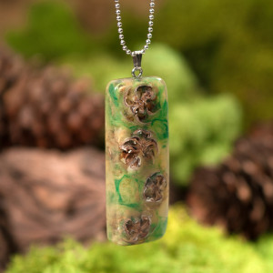 Wisior z szyszkami w zieleni.