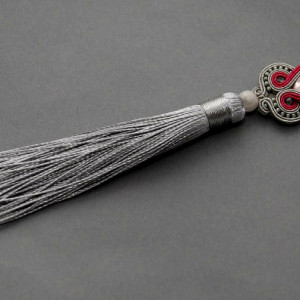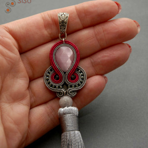oferuję wisiorek zrobiony haftem sutasz, ozdobiony fasetowanymi koralikami szklanymi