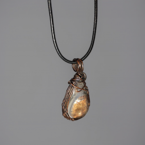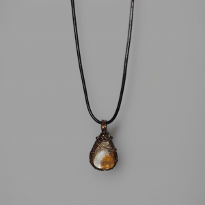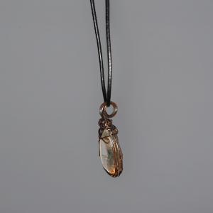 Wisiorek z kwarcu fantomowego i czystej miedzi na rzemieniu