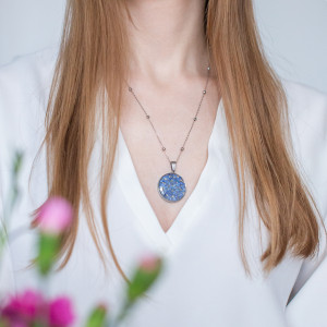 Wisiorek wykonany jest z żywicy epoksydowej z wykorzystaniem suszonych kwiatów. Metalowe elementy to stal nierdzewna szlachetna chirurgiczna.