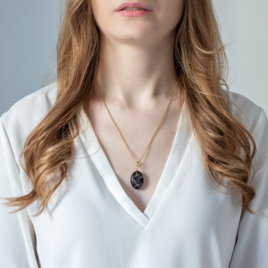 Wisiorek wykonany jest z żywicy epoksydowej z wykorzystaniem suszonych kwiatów. Metalowe elementy to stal nierdzewna szlachetna chirurgiczna.