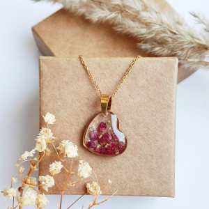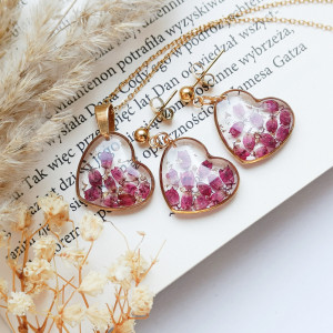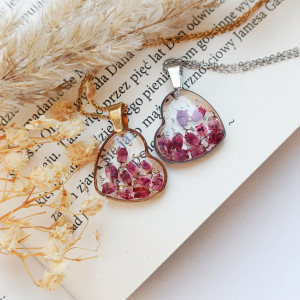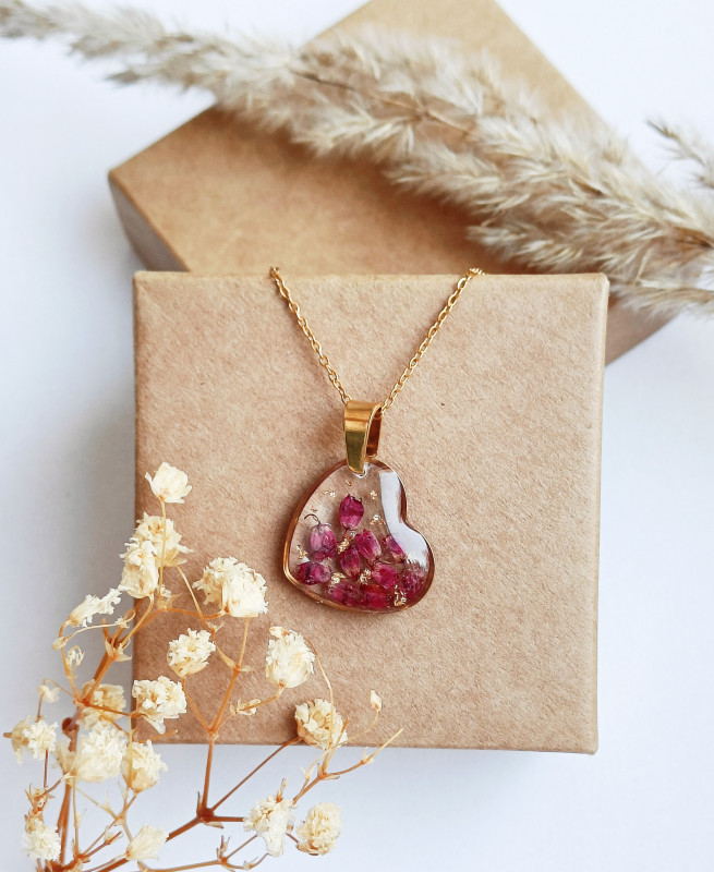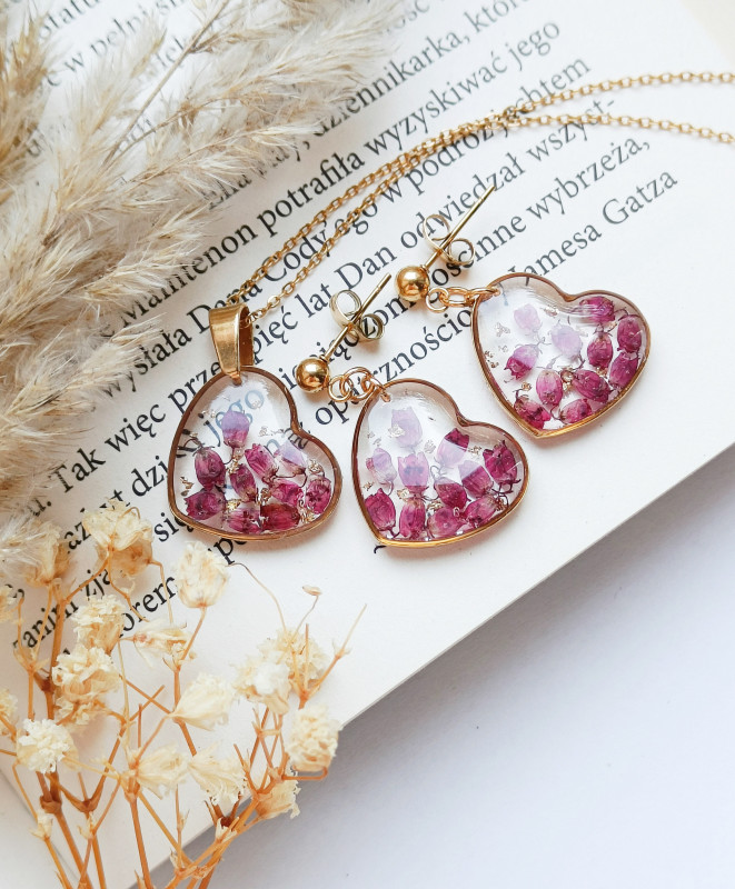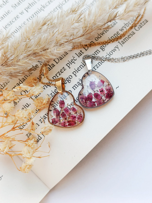 Wisiorek z żywicy serce z wrzosem złoty