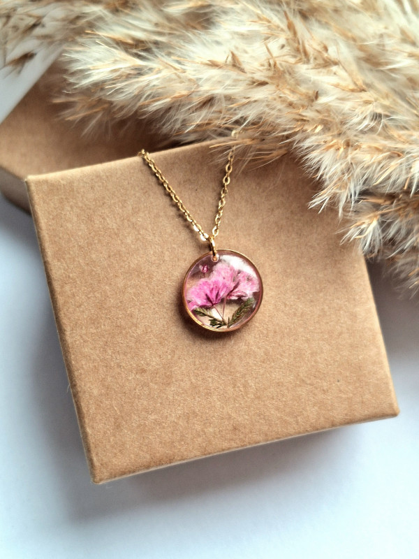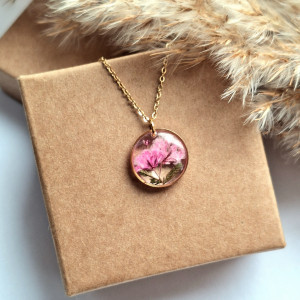 Wisiorek z żywicy z kwiatami różowej gipsówki