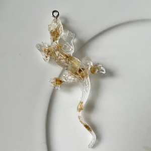 Wisiorek zawieszka jaszczurka w kolorze miodowym.