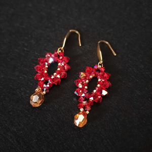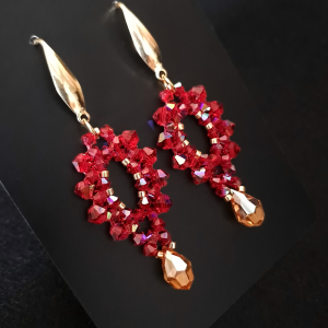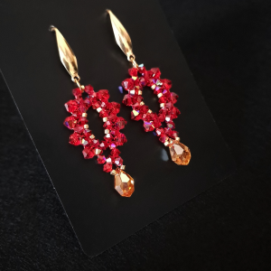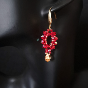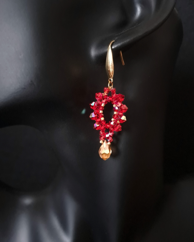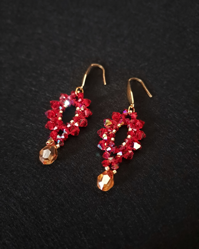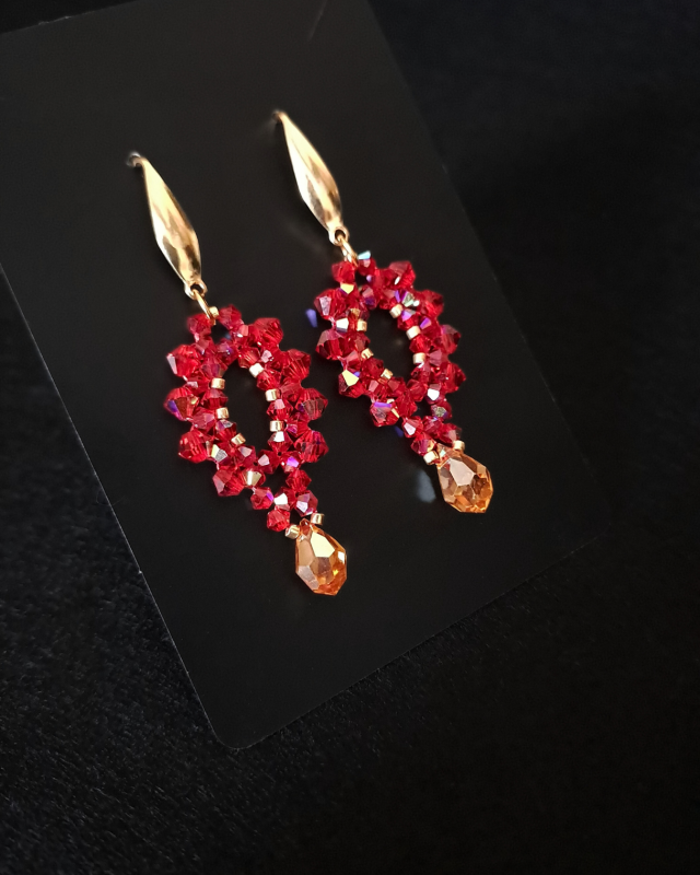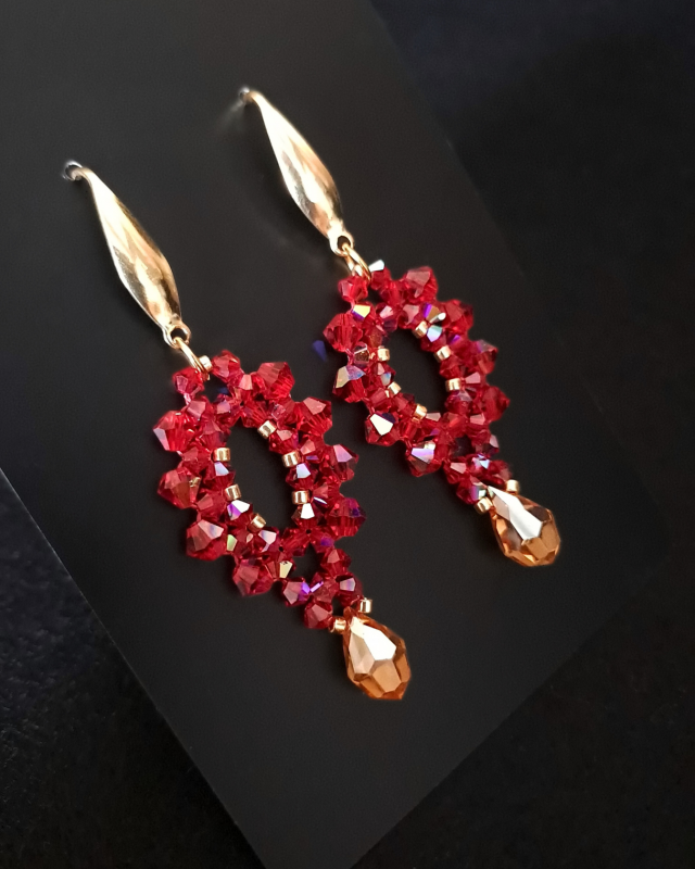Model został wykonany ręcznie z kryształków Preciosa Bicone:- intensywnej czerwieni Siam AB (3 i 4 mm),