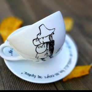Przedmiotem sprzedaży jest ręcznie malowana filiżanka z postacią Włóczykija. Na spodek można dodać dowolny napis (proszę umieścić w komentarzu do zamówienia tekst).