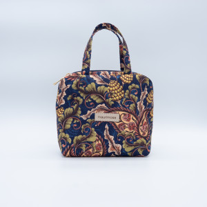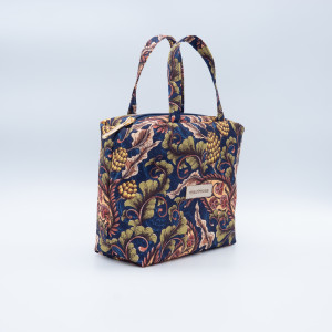 Granatowa wodoodporna kosmetyczka we wzór paisley świetnie sprawdzi się na co dzień lub na weekendowy wyjazd. Ma lekko usztywniane ścianki i posiada praktyczne uchwyty, dzięki czemu jest bardzo wygodna w użyciu.