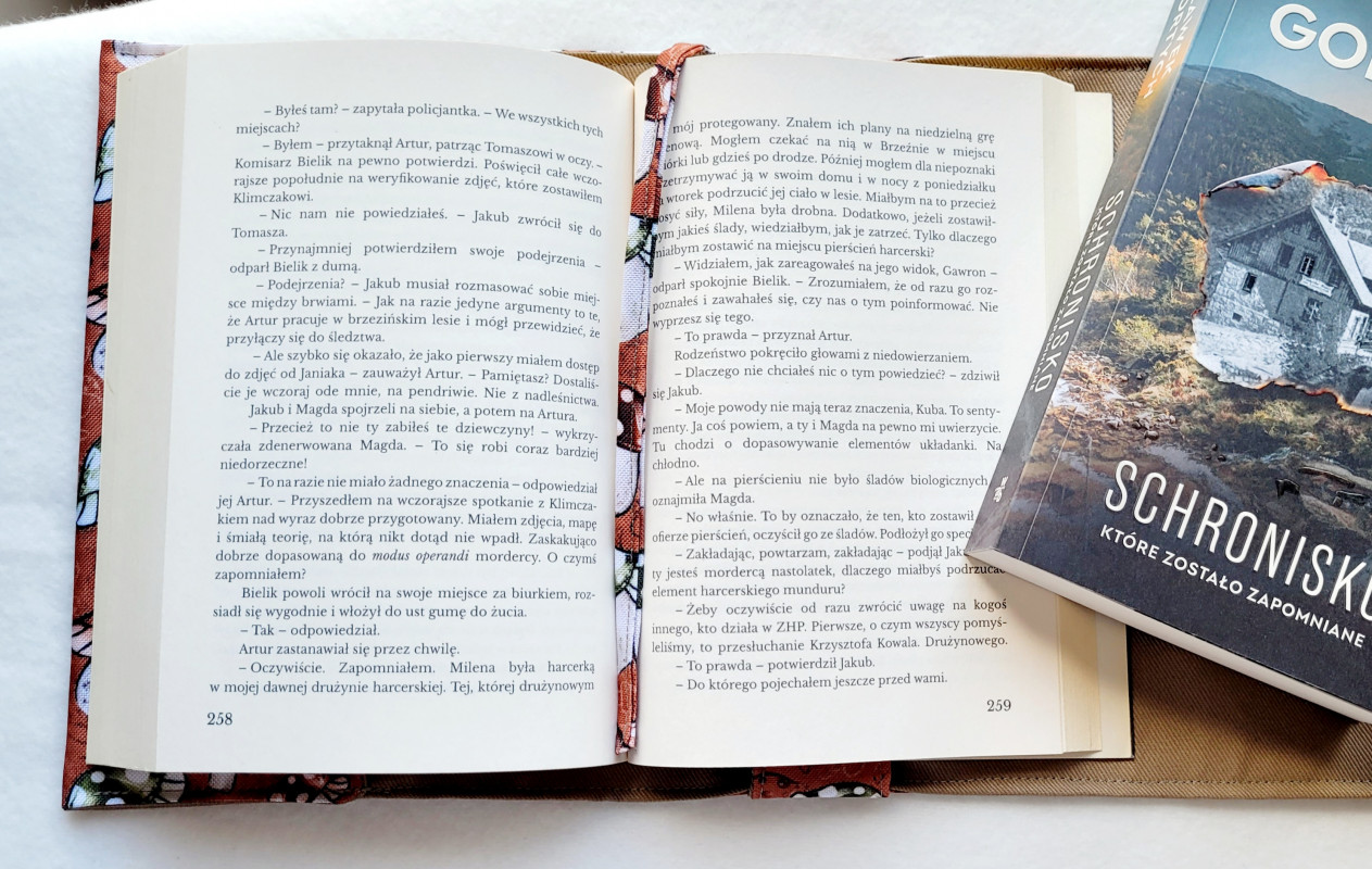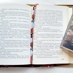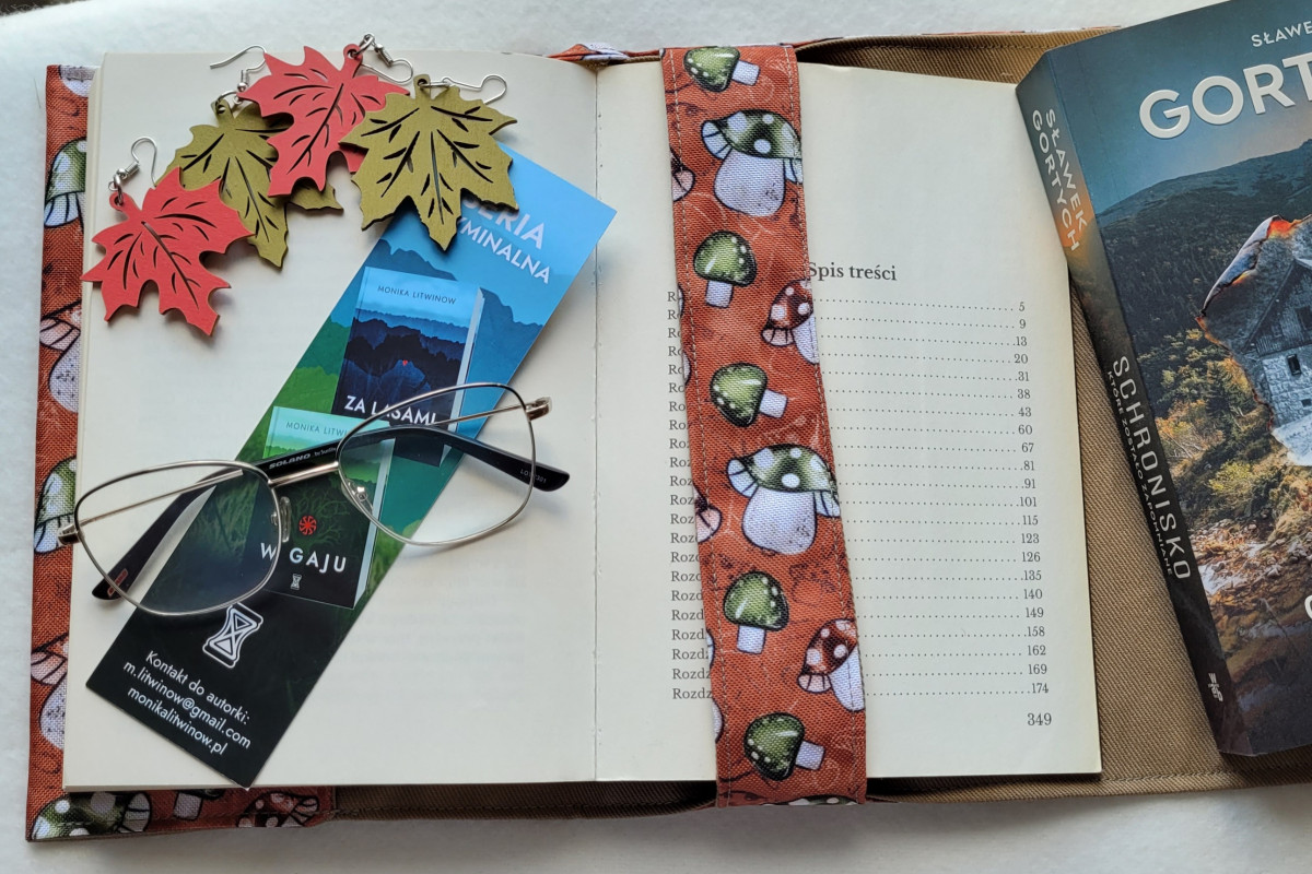 - zapięcie na gumkę, dzięki czemu książka się nie otwiera, a okładka dostosowuje się do grubości tomu;