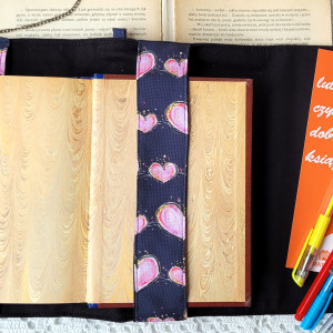 - zapięcie na gumkę, dzięki czemu książka się nie otwiera, a okładka dostosowuje się do grubości tomu;