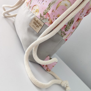 Worko-plecak wykonany z tkaniny wodoodpornej na zewnątrz i bawełnianej podszewki wewnątrz a całość ściągana jest bawełnianym sznurem.