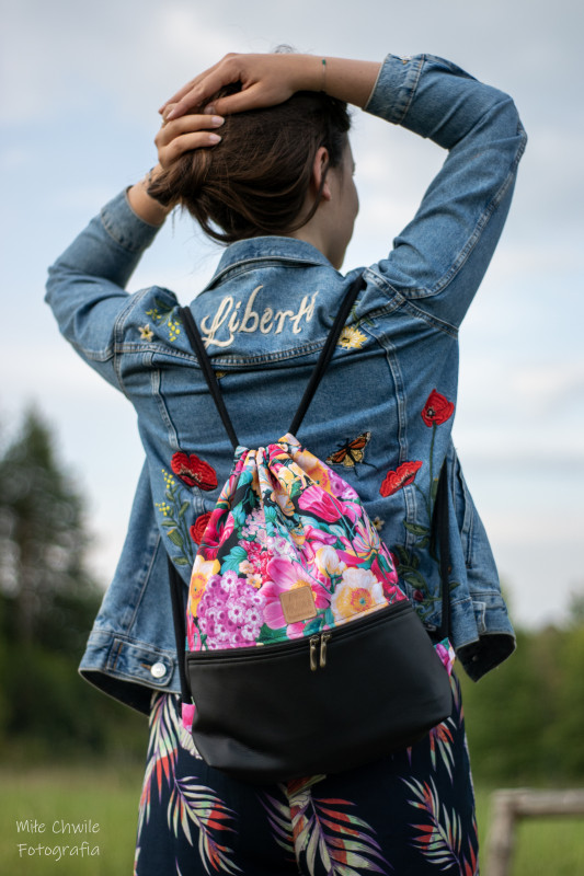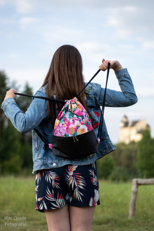 Workoplecak w kolorowe kwiaty / plecak / worek