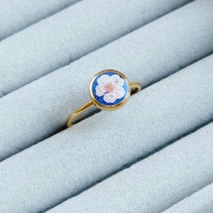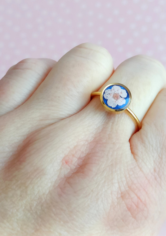 nspirowany naturą, zawiera uwiecznione, w wysokiej jakości transparentnej żywicy, suszoney kwiatek wiśni.