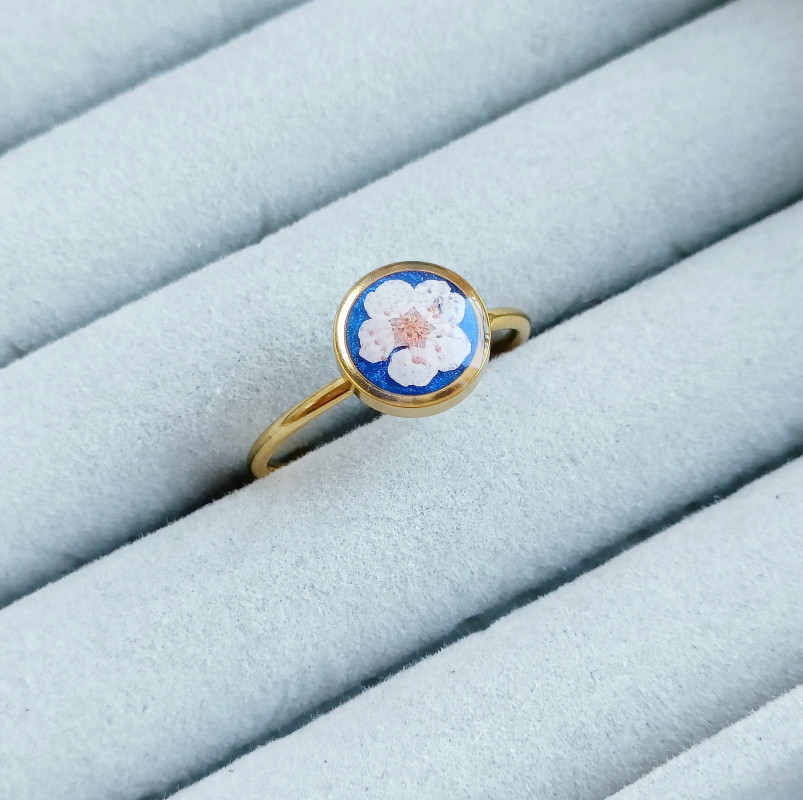 stal chirurgiczna, żywica, prawdziwe kwiaty
