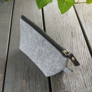 Pojemny, praktyczny i prosty piórnik z filcu poliestrowego 100%. Filc grubości 4mm. Pomieści niezbędne akcesoria szkolne jak i może służyć jako mała kosmetyczka. Przydatny również jako pojemnik w torbie na różnego rodzaju drobiazgi. Zamykany jest czarnym zamkiem, srebrny suwak ozdobiony czarną skórą naturalną. W bok wszyte nasze logo. Piórnik został wycięty laserowo, ma bardzo równe boki i nie będzie się strzępić. Taki piórnik będzie bardzo miłym prezentem oraz unikatowym dodatkiem. Jeśli lubisz się wyróżnić w pracy zabierz go ze sobą.