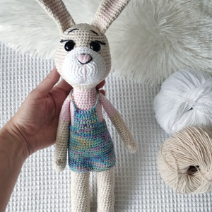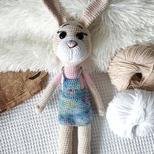 Aby zabawka była bezpieczna dla dziecka, musimy ją uprać. Dlatego też wybrałam włóczkę, która jest mieszanką bawełny i akrylu. Będzie bezproblemowo przechodzić proces prania nie tracąc na wyglądzie. Jak zabawkę uprać dowiesz się z instrukcji, którą zamieszczę do zabawki.