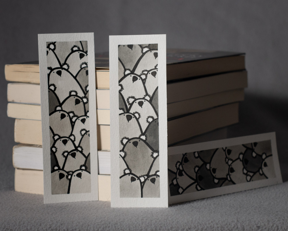 Wszystkie zakładki do książek powstają w mojej skromnej pracowni, na bazie papieru do akwareli, wody i farb akwarelowych.