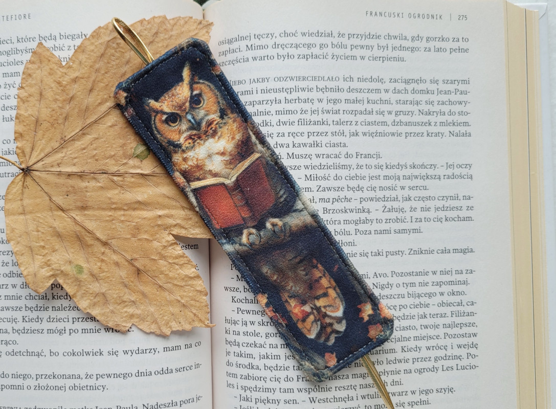 - przyjemna w dotyku tkanina welurowa z jesiennym motywem sowy;