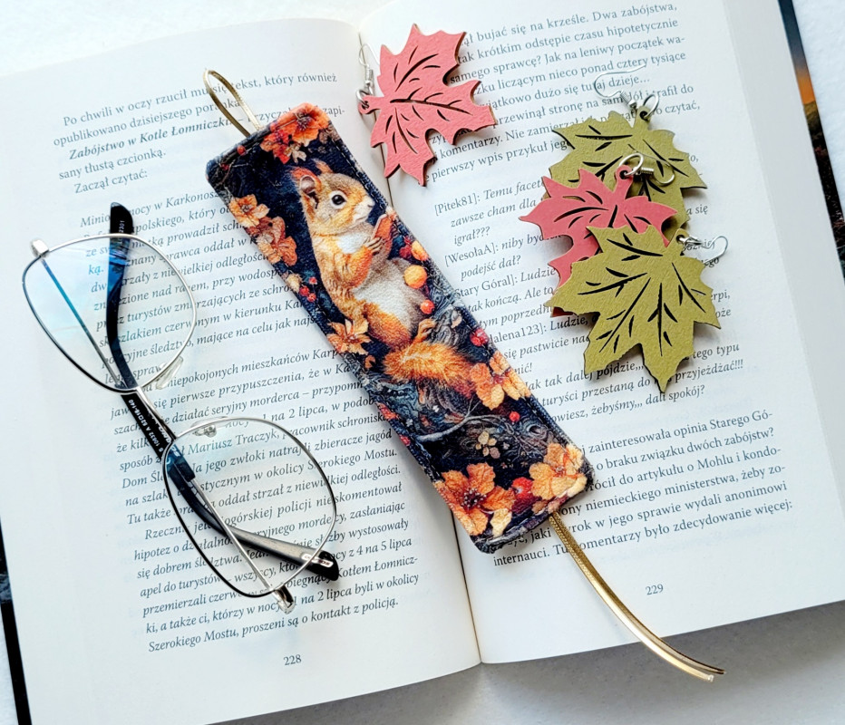 - przyjemna w dotyku tkanina welurowa z jesiennym motywem zaczytanego królika;