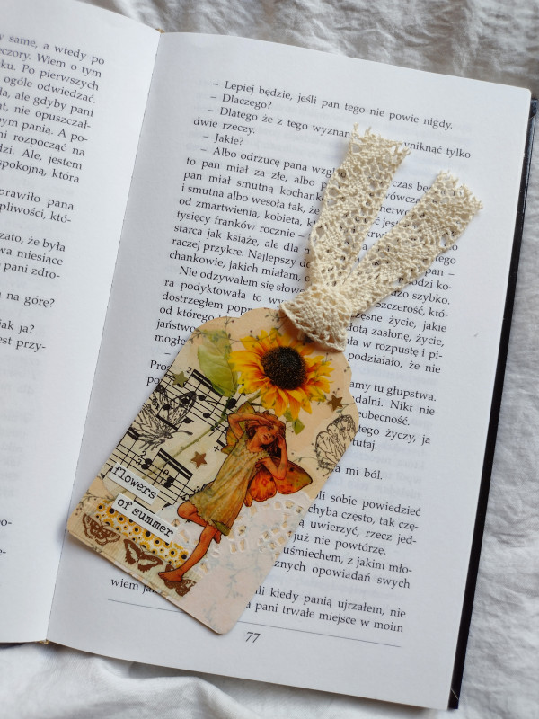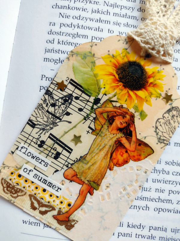 zakładka do książki, żółta wróżka, słoneczniki, lato, ogród, fairycore