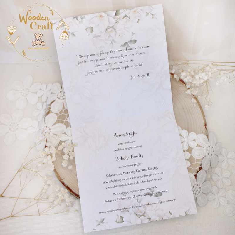 Zaproszenia na Pierwszą Komunię Świętą, komunijne "WhiteRosesGirl"