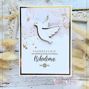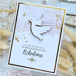 Do zaproszenia polecam w tym samym zestawie kolorystycznym podziękowania z czekoladką, a także winietki, pudełeczka na podziękowania, zawieszki lub naklejki na ciasto, księgi gości.