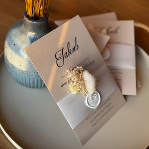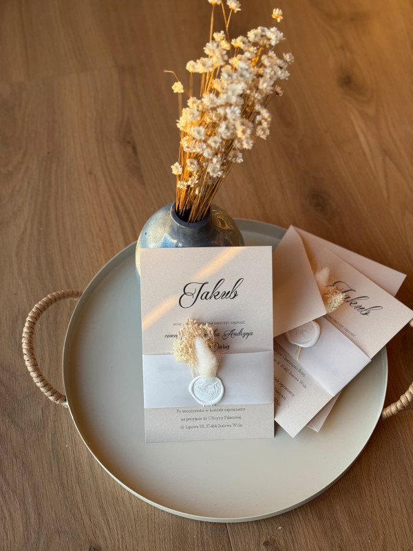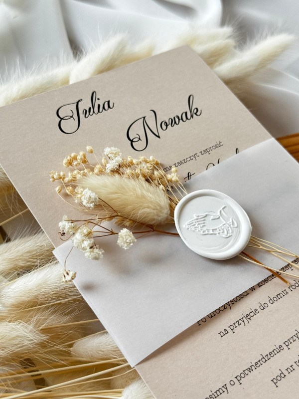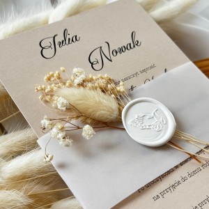 - W cenie personalizacja i koperta w kolorze papieru zaproszenia (lak do koperty nie jest wliczony w cenę)