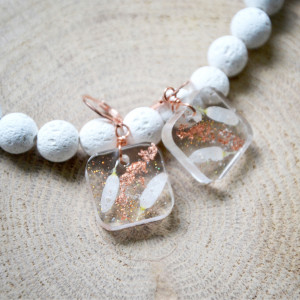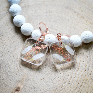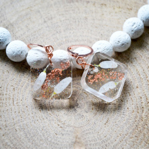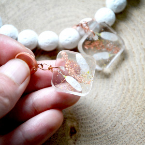 żywica, suszone płatki kwiatów, miedziane elementy
