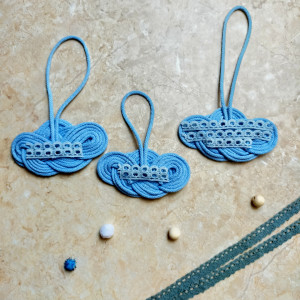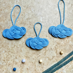 Ręcznie robione techniką makramy niebieskie chmurki, które pięknie będą prezentować się w pokoju chłopca. Taka niepowtarzalna dekoracja ściany będzie idealnym prezentem z okazji babyshower, na urodziny dla chłopca. To idealny podarunek dla siostrzeńca od cioci, dla dziecka chrzestnego od matki chrzestnej, dla synka od mamy.