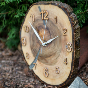 Niedoskonałości, pęknięcia i ubytki widoczne na zdjęciach są zamierzone i mam nadzieję, że osoby zainteresowane to docenią. Ze względu na strukturę anizotropową drewna, z czasem (ale niezbyt często - w przypadku tego zegara na 99% nie będzie pęknięć, bo drewno było sezonowane a sam zegar zstał zrobiony ok. roku temu i do tej pory nic się nie ujawniło) mogą się pojawić pęknięcia, które są naturalne dla tego materiału.