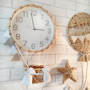 Zegar wykonany na bazie zegara Tromma opleciony ręcznie wikliną papierową zabezpieczoną lakierem akrylowym.