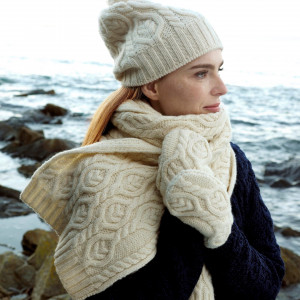 Zestaw CZAPKA + SZALIK + RĘKAWICZKI - Wzór w liście