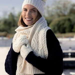 Ten piękny zestaw: czapka z pomponem, szalikiem i rękawiczkami - jest luksusowo miękka i z pewnością zapewni Ci ciepło i przytulność w zimowe miesiące.