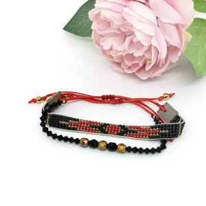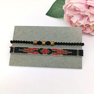 Obie bransoletki mają regulowany obwód, zapięcie makramowe.