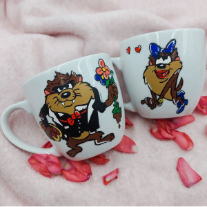 Przedmiotem sprzedaży jest ręcznie malowany zestaw kubków dla zakochanych.