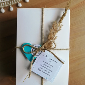 Do pudełka dołączona jest karteczka z Państwa dowolnymi życzeniami (mogę podrzucić jakieś inspiracje lub pomysły dostosowane do uroczystości) lub dedykacją imienną dla malucha.