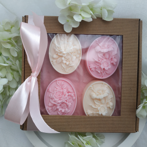 Mydełka glicerynowe dekoracyjne o zapachu róży i bzu, 4x65g