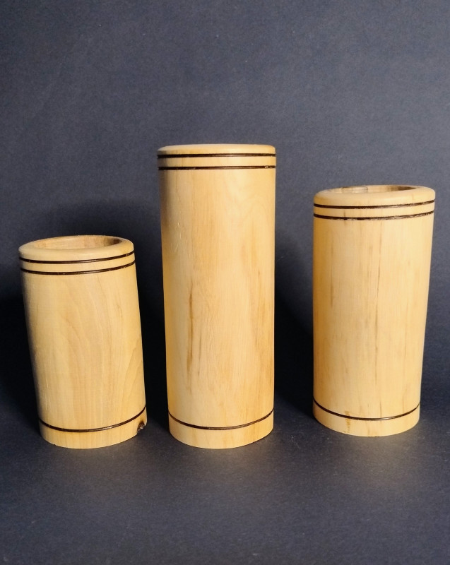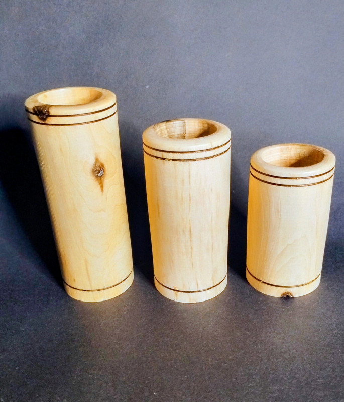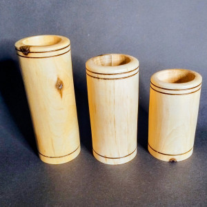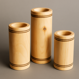 Zestaw trzech świeczników drewnianych – naturalna prostota i ciepło światła