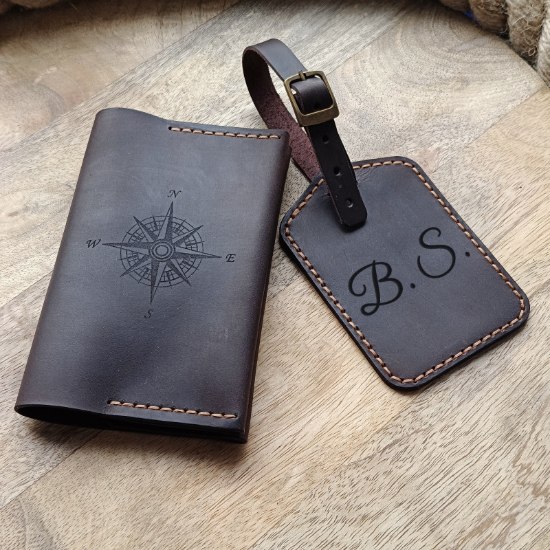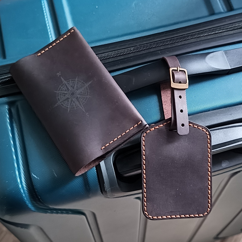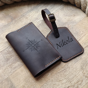 Zestaw Zawieszka na walizkę Etui na paszport z grawerem skórzane