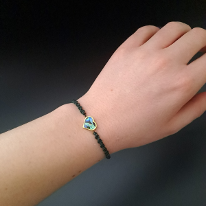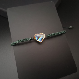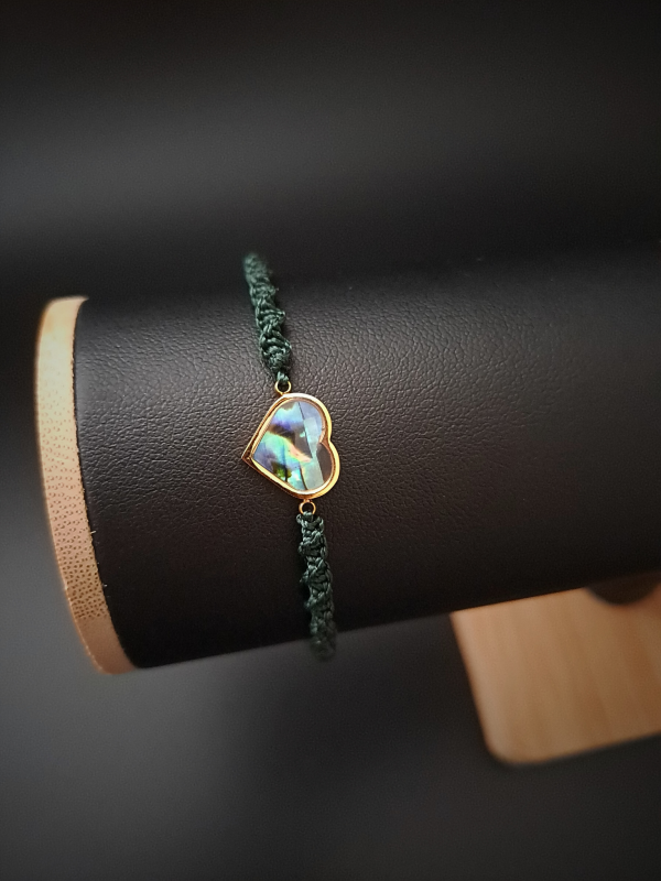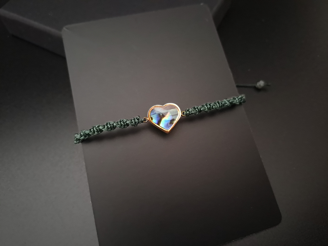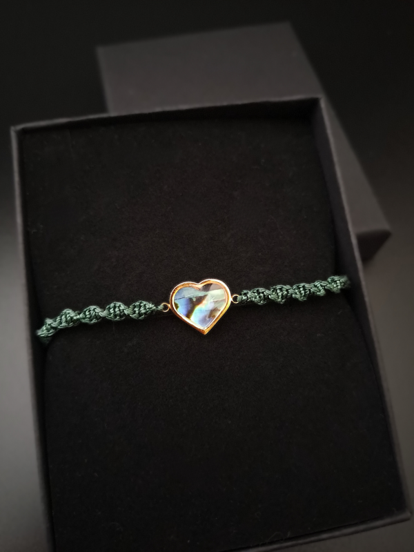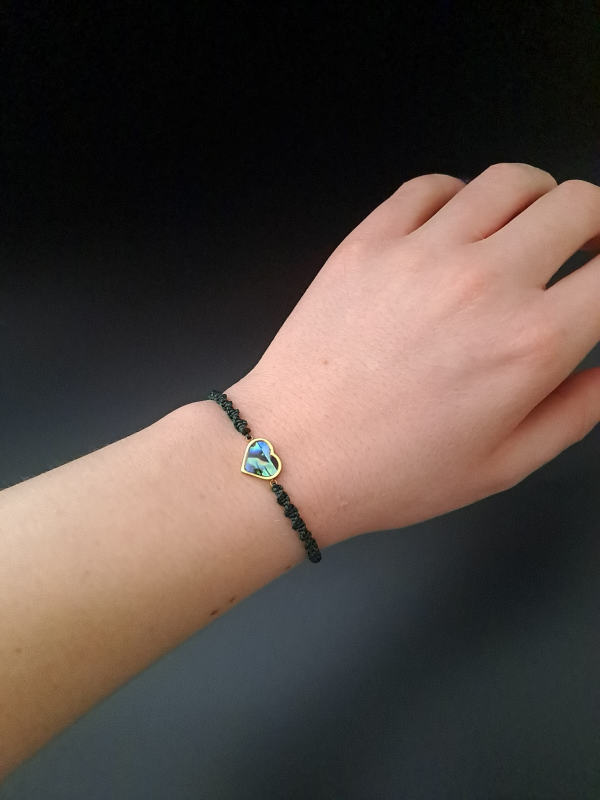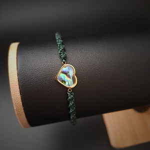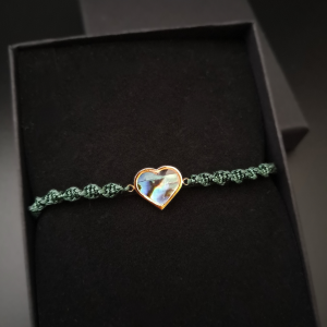 Ta bransoletka to dodatek, który potrafi odmienić każdy dzień. Ciemnozielony kolor sznurka symbolizuje harmonię z naturą i równowagę, natomiast złoty łącznik w kształcie serca, wypełniony masą perłową, przyciąga uwagę subtelnym, ale eleganckim blaskiem. Ten wyjątkowy element sprawia, że bransoletka doskonale łączy codzienny luz z elegancją, stając się idealnym wyborem zarówno na co dzień, jak i na bardziej formalne okazje. Dzięki wygodnemu makramowemu wiązaniu, które można swobodnie regulować, jest to idealny dodatek dla kobiet w każdym wieku – od nastolatek po dojrzałe kobiety, które cenią sobie nie tylko styl, ale i wygodę.Masa perłowa dodaje elegancji i subtelności, a jednocześnie niesie ze sobą bogatą symbolikę – uważa się, że wspomaga wyciszenie i harmonię. Z kolei drobne koraliki z turkusu afrykańskiego na końcach sznurków wzmacniają całość swoją symboliczną energią, kojarzoną z ochroną i pozytywną siłą. Turkus od wieków uważany jest za kamień przynoszący spokój i równowagę, co czyni go doskonałym dodatkiem do tej harmonijnej bransoletki.