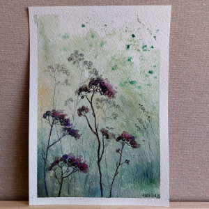 Oryginalna akwarela, wykonana profesjonalnymi farbami akwarelowymi Rembrandt oraz kredkami akwarelowymi na papierze akwarelowym 300 g/m2 . Praca jest sygnowana. Wymiary pracy :A5. Kolory mogą się nieznacznie różnić od oryginału, co jest uzależnione od ustawień monitora.