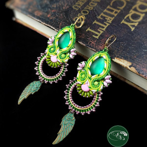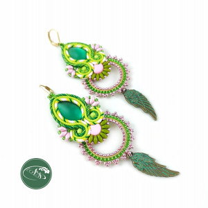 Zielone Anioły kolczyki sutasz