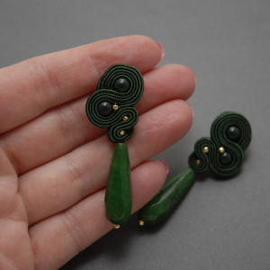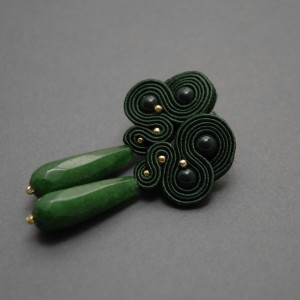 oferuję kolczyki zrobione haftem sutasz, ozdobione koralikami preciosa i pięknymi, fasetowanymi kroplami agatów