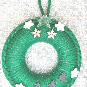 Wianek na wypełnieniu styropianowym, wykonany ze sznurka bawełnianego Glitter 5 mm według własnego projektu.