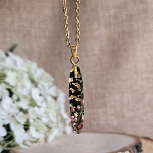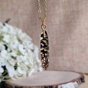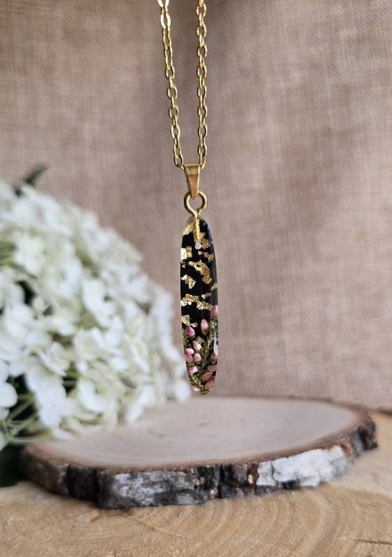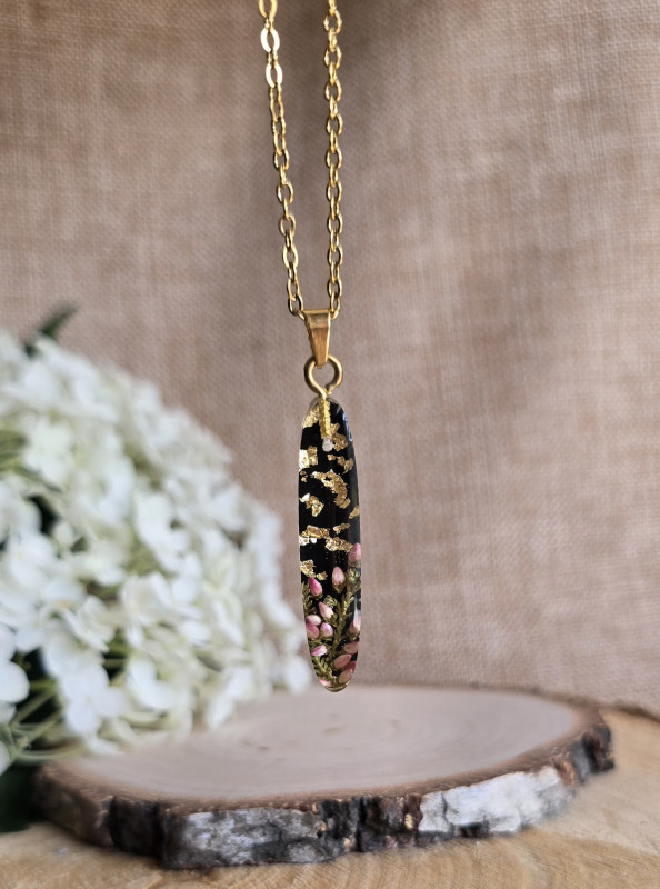 Oferuję Państwu unikalną biżuterię. Zawieszka jest wykonana z suszonych kwiatów i żywicy epoksydowej. Biżuteria jest wspaniałym i oryginalnym prezentem na lata. Do utrwalenia roślin stosuję żywicę jubilerską najwyższej jakości.