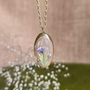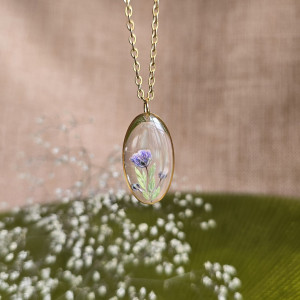 Oferuję Państwu unikalną biżuterię. Zawieszka jest wykonana z suszonych kwiatów i żywicy epoksydowej. Biżuteria jest wspaniałym i oryginalnym prezentem na lata. Do utrwalenia roślin stosuję żywicę jubilerską najwyższej jakości.