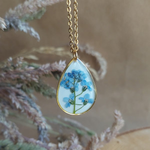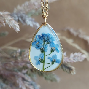 Oferuję Państwu unikalną biżuterię. Zawieszka jest wykonana z suszonych kwiatów i żywicy epoksydowej. Biżuteria jest wspaniałym i oryginalnym prezentem na lata. Do utrwalenia roślin stosuję żywicę jubilerską najwyższej jakości.