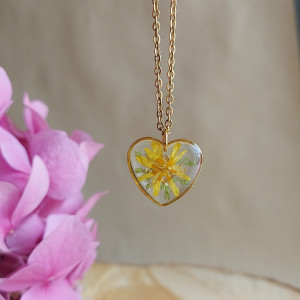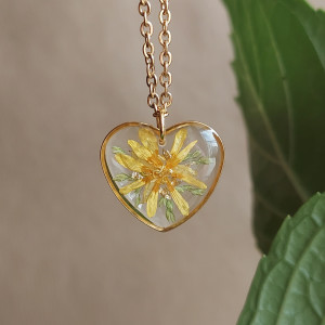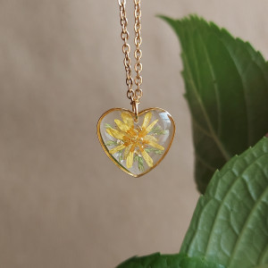 Oferuję Państwu unikalną biżuterię. Zawieszka jest wykonana z suszonych kwiatów i żywicy epoksydowej. Biżuteria jest wspaniałym i oryginalnym prezentem na lata. Do utrwalenia roślin stosuję żywicę jubilerską najwyższej jakości.