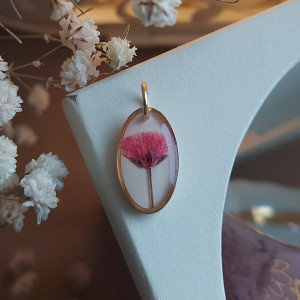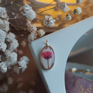 Oferuję Państwu unikalną biżuterię. Zawieszka jest wykonana z suszonych kwiatów i żywicy epoksydowej. Biżuteria jest wspaniałym i oryginalnym prezentem na lata. Do utrwalenia roślin stosuję żywicę jubilerską najwyższej jakości.