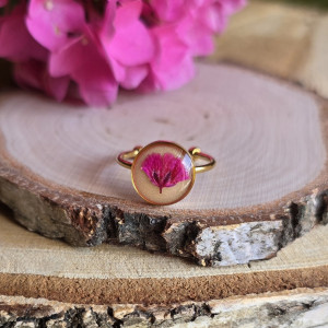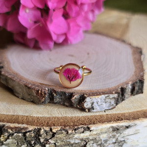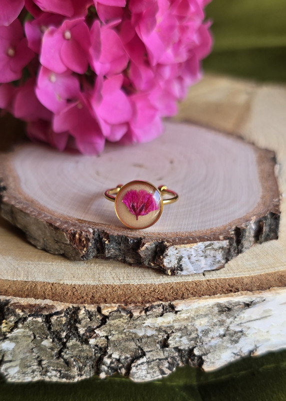 Oferuję Państwu unikalną biżuterię. Pierścionek jest wykonany z suszonych kwiatów i żywicy epoksydowej. Biżuteria jest wspaniałym i oryginalnym prezentem na lata.