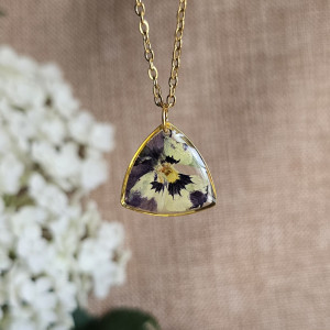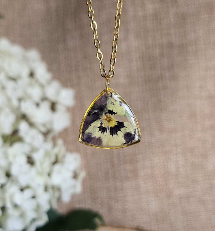 Oferuję Państwu unikalną biżuterię. Zawieszka jest wykonana z suszonych kwiatów i żywicy epoksydowej. Biżuteria jest wspaniałym i oryginalnym prezentem na lata. Do utrwalenia roślin stosuję żywicę jubilerską najwyższej jakości.